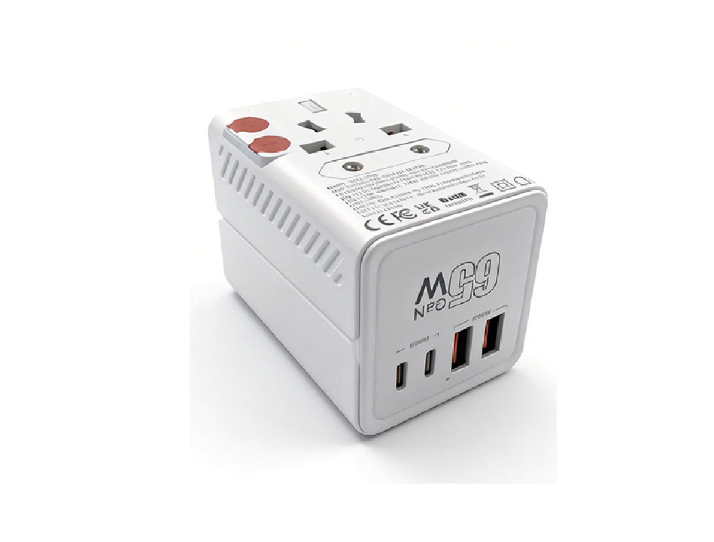 Model:IN-CA-546 Title :PD65W 4 Ports Universial travel charger Output : PD 65W Max. 2USB+2Type-C Plug :US/EU/UK/AK Socket;Support EU/UK/AU/US Socket